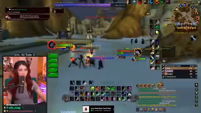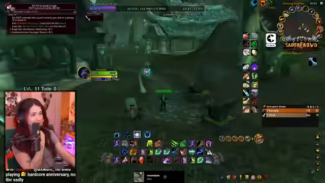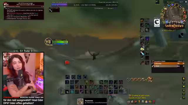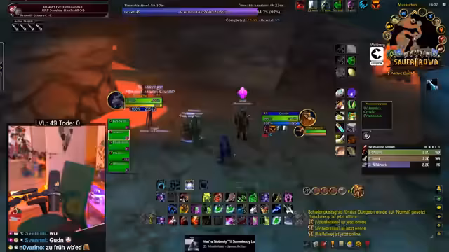 05:18:38Der Stream konzentriert sich auf das Erreichen von Level 50 in World of Warcraft. Im Fokus stehen das Sammeln von Questgegenständen, wie einem speziellen Hammer, und das Lösen von Begleitquests. Der Streamer erkundet verschiedene Gebiete, sammelt Ressourcen wie Geisterpilze und führt Gruppenkämpfe gegen Elites durch. Dabei wird auf die Wichtigkeit von Gruppenzusammenhalt und strategischem Vorgehen, wie vorsichtigem Pullen und Aggro-Management, hingewiesen. Die Fortschritte im Level sind ein zentrales Element, das durch das Farmen von Erfahrungspunkten (EP) vorangetrieben wird.