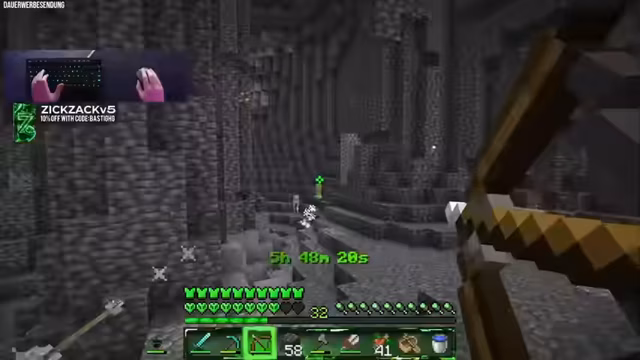 00:19:29Der Streamer erläutert die spezifischen Regeln der Ultra-Hardcore-Challenge, wie zum Beispiel das Fehlen natürlicher Regeneration, das nur durch Goldäpfel oder Tränke ausgeglichen werden kann. Ein Fehler bei einem Bosskampf wie dem Wither kann zum sofortigen Tod führen. Aus diesem Grund spielen beide Streamer sehr vorsichtig und konzentriert. Das primäre Ziel ist es, einen starken Bogen mit der Verzauberung 'Unendlich' zu angeln, um unabhängiger zu werden und eine gute Grundlage für den weiteren Spielverlauf zu schaffen.