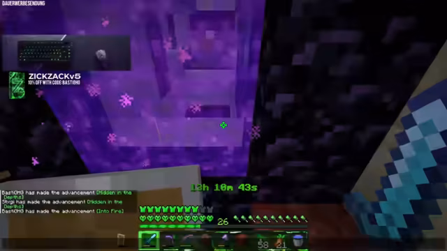00:26:02Der aktuelle Stand des Minecraft-Projekts wird vorgestellt: Die beiden Streamer befinden sich in ihrer Welt und haben den Full-Enchanter fertiggestellt, der es ihnen ermöglicht, auf Level 30 zu verzaubern. Sie zeigen ihren Zuschauern den Looting-3-4 und die Spitzhacke mit Fortune 3, Fe4 und Arbeiten 3. Ihr Ziel ist es, Minecraft durchzuspielen. Es wird besprochen, was alles für eine Blaze Rod benötigt wird. Stegi hat vergessen, was benötigt wird. Es wird überlegt, wie man an Mending kommt. Dafür werden 64 Gastränen benötigt. Der Streamer schlägt vor, eine Warzenplantage anzubauen. Sie wollen sich beide eine schnelle Spitzhacke machen. Es wird besprochen, wie man Zombie-Picklin am besten farmt.