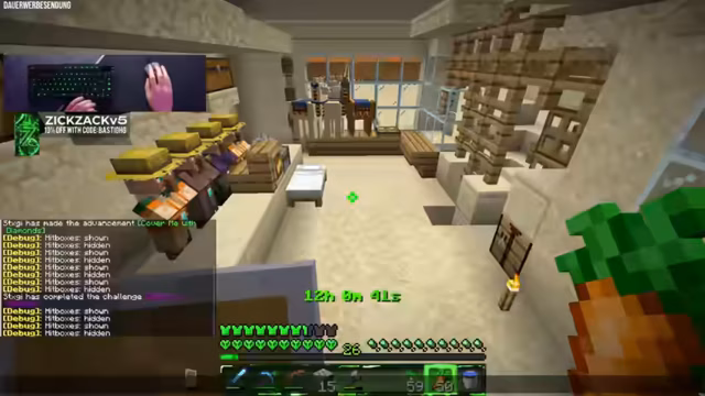 00:12:00Der Stream beginnt mit einer herzlichen Begrüßung der Zuschauer zu einer weiteren Minecraft-Session mit Stegi. Es wird ein neues Video namens 'Zehn YouTuber, Zehn Minuten' erwähnt, das kurz zuvor online gegangen ist und unbedingt abgecheckt werden soll. Es wird angedeutet, dass das Video viele Überraschungen bereithält, aber der Streamer bemängelt, dass Stegi vorab die Videobeschreibung geöffnet und die teilnehmenden YouTuber angesehen hat, was den Überraschungseffekt mindert. Trotzdem freut sich der Streamer auf den gemeinsamen Stream und die Fortsetzung des Minecraft-Abenteuers in der 100% der Busches Welt. Es soll außerdem in die 111 Custom Achievements Welt reingegangen werden, um das Gewitter zu erwarten, damit es mit dem Projekt voran geht.