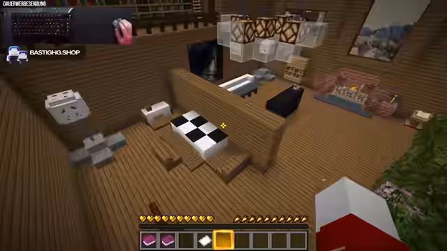 00:40:52Das nächste Puzzle erfordert, dass die drei Eisenblöcke geschmolzen und zu einer Schere verarbeitet werden. Diese Schere wird benötigt, um Glas in der Nähe eines Amethystblocks zu zerbrechen und diesen an einem roten Terrakotta-Block zu platzieren. Damit wird ein Redstone-Signal ausgelöst, das eine Trappe öffnet und den Weg frei macht.