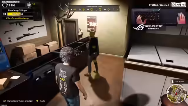 02:10:22Der Streamer erwägt, für 5.000 das andere Haus in der Stadt zu kaufen, um Miete zu sparen und eventuell mehr Inventar zu haben. Er stellt fest, dass die Krone keinen Cooldown mehr hat und sortiert Müll aus. Es wird diskutiert, warum man überhaupt Häuser im Spiel kaufen sollte. Der Streamer versteht nicht, was er eigentlich im Spiel soll. Eine Blind-Auktion wird in Erwägung gezogen. Der Laden wird erweitert, was sich als lohnenswert erweist. Der Streamer bittet die Zuschauer, etwas zu kaufen, um seine Unterkunft leisten zu können. Es wird festgestellt, dass der Laden eigentlich schon geschlossen hat, aber immer noch Kunden kommen, was möglicherweise ein Bug ist. Der Streamer nutzt dies für Late-Night-Shopping aus, obwohl es eigentlich schon low ist.