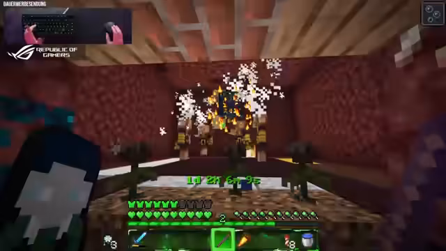 04:16:14Zum ersten Mal im Stream erhält Basti einen Wither-Skelett-Schädel. Er plant, den Spawner-Raum zu vergrößern, um mehr Spawns zu ermöglichen. Er überlegt, ob er ein anderes Spawnei verwenden soll, entscheidet sich aber, mehr Piglin Brutes zu spawnen. Er macht kurzzeitig einen Spinnenspawner, um die Fläche zu erweitern. Er setzt einen zweiten Piglin Brute Spawner ein, um die Anzahl der Spawns zu erhöhen. Er glaubt, dass ein dritter Spawner zu viel wäre und dass sie gezeigt haben, dass sie wissen, was sie tun.
