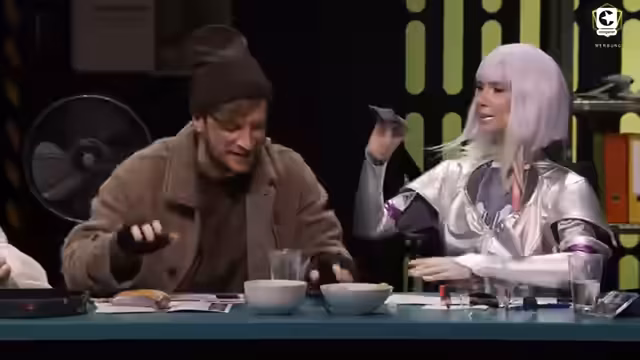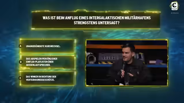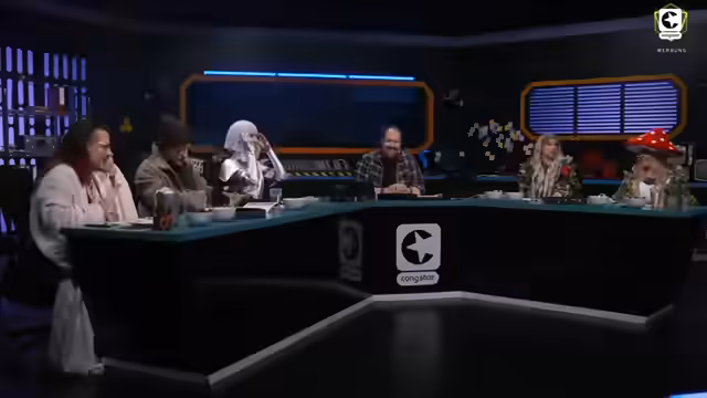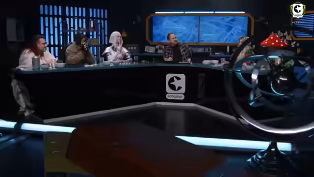 00:13:35Alexander Kahnstedt begrüßt die Zuschauer zu „Cyra's Cosmic Quest 2: The Sphere“, einem Pen-and-Paper-Abenteuer, das von Congstar unterstützt wird. Er stellt sich als professioneller Spielleiter vor, der bereits im letzten Jahr die Crew bei der Rettung der Galaxis unterstützt hat. Für Neulinge wird versprochen, dass das Spielprinzip erklärt wird. Die anwesenden Spieler, darunter Jenny, Bonjwa, Maxim, Kaddi und Einpapo, sind bereits in ihren Rollen und Kostümen. Kaddi, die als Neuling dabei ist, trägt einen Pilzhut und ist gespannt auf das Sci-Fi-Setting. Maxim erwähnt seine Rolle als Peter und Linda spricht über ein Upgrade ihres Androiden-Charakters Uri. Die allgemeine Stimmung ist aufgeregt und voller Vorfreude auf das Abenteuer.