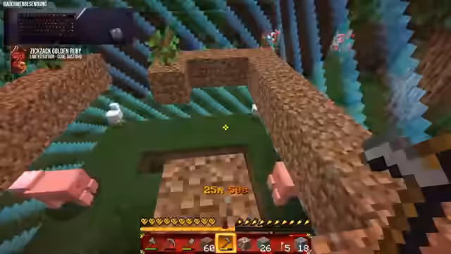 01:02:50Der Streamer verbessert seine Ressourcenbasis, indem er eine Schere aus den 21 Eisenbarren herstellt, die er gefunden hat, um Schafe zu scheren und sie zu züchten. Dies ist notwendig, um das nächste Achievement "Acquire Hardware" zu erreichen. Währenddessen arbeitet er an seinem Inventar und plant, seine provisorische Basis durch eine schönere und größere Struktur aus Steinziegeln und glatten Steinen zu ersetzen. Er beginnt, Dark Oak Setzlinge zu pflanzen, um einen nachhaltigeren und effizienteren Holzfarm zu erstellen, und verspricht sich davon mehr Platz, Übersichtlichkeit und ein ansprechenderes Design für seine Tierfarmen.