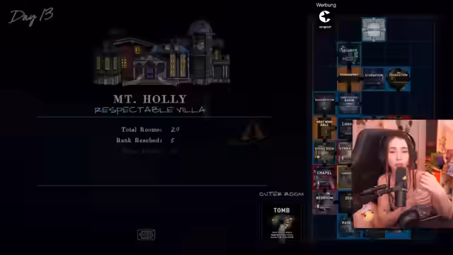 03:03:39Im Spiel entdeckt der Streamer neue Räume und Lore-Elemente. Er findet einen Brief und ein Grab in einem unterirdischen Raum, der eine Geschichte über die Familie, die das Herrenhaus besaß, erzählt. Der Streamer versucht, das Rätsel mit den Statuen in der Tomb und den Mosaikfenstern in der Chapel zu lösen. Er braucht Hilfe aus der Community, um die römischen Zahlen zu entschlüsseln.