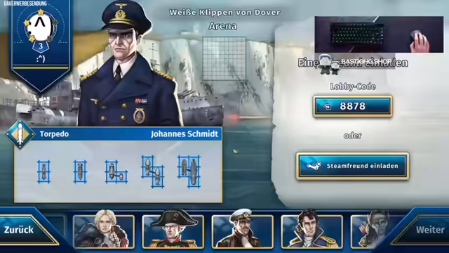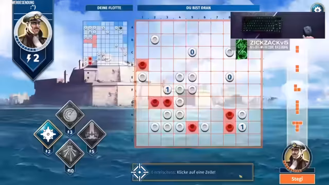 04:02:09Nach dem Ende der vorherigen Session beginnt der Streamer zusammen mit Stegi ein neues Spiel, das auf Steam als 'Hasbro Battleship' verfügbar ist. Die beiden starten ins Spiel, wobei der Streamer Stegi detailliert die grundlegenden Regeln und Fähigkeiten der Kommandeure erklärt. Sie wählen Giuseppe als Charakter, der spezielle Fähigkeiten wie das Platzieren von Minen und die Nutzung eines Echolots besitzt. Das Spielprinzip, das dem klassischen Schiffe versenken ähnelt, wird eingeführt, wobei der Fokus auf strategischer Platzierung der Schiffe und der geschickten Nutzung der Spezialfähigkeiten liegt.