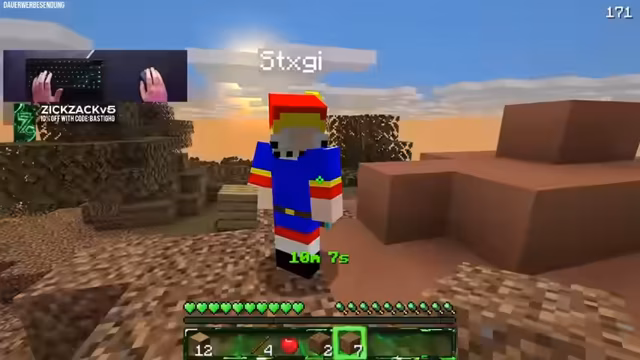 00:11:14Ein unangenehmes persönliches Ereignis wird enthüllt. Der Streamer hat sich vor dem Stream am Mittelfinger und am Zeigefinger der rechten Hand verbrannt, was seine Fähigkeit zum Spielen von Minecraft beeinträchtigt. Der Unfall ereignete sich beim Erwärmen von Kaffee in der Mikrowelle, wobei ein Henkel der Tasse unerwartet extrem heiß wurde. Trotz der Schmerzen versichert er, alles für den Stream zu geben.