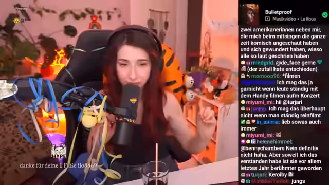 03:42:52Es wird nachgefragt, ob jemand im Chat beim Sabrina Carpenter Konzert war und von eigenen Konzertbesuch berichtet. Der Stream am Mittwoch fiel aus, weil das Konzert besucht wurde. Das Outfit und die Performance der Künstlerin werden gelobt. Es wird erzählt, wie schwierig es war, Karten für das Konzert zu bekommen, da es das einzige in Deutschland war. Die Karten waren ein Geburtstagsgeschenk. Es wird über die Outfits der Sängerin gesprochen, die in den Deutschlandfarben gehalten waren. Grüße gehen an Zuschauer in der Küche. Es wird über den Ticketkauf im Resale gesprochen und die Schwierigkeit, Karten für beliebte Künstler zu bekommen. Es wird erwähnt, dass Sabrina Carpenter auf dem Konzert Mama Mia gesungen hat. Es wird die Freude darüber ausgedrückt, endlich wieder ein Konzert besuchen zu können, nachdem es zuvor nicht geklappt hatte, Tickets für andere Künstler zu bekommen. Es wird von einer überwiegend weiblichen Zuschauerschaft berichtet, die sich alle schick gemacht hatten und eine gute Zeit hatten. Es wird von zwei Männern im Publikum erzählt, die alleine da waren und Spaß hatten. Abschließend wird dazu ermutigt, auch alleine auf Konzerte zu gehen, da es nicht so schlimm ist, wie man denkt. Es wird sich für Glückwünsche zum Partnerjubiläum bedankt.