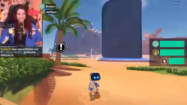 01:14:16Die Streamer beginnen mit der Sammel-Challenge in Astro Bot und erkunden die verschiedenen Welten. Es wird erklärt, dass die Bots in den Welten versteckt sind und es darum geht, diese zu finden. Es wird ein Bot auf einer Steintreppe entdeckt und eingesammelt. Die Anzeige der Bots im Level wird erklärt und wie diese chronologisch geordnet sind. Die Streamer tauschen sich über ihre Funde aus und geben sich gegenseitig Tipps. Es wird festgestellt, dass einige Bots gut versteckt sind und man Klippen runterspringen oder versteckte Bereiche erkunden muss. Die Game-Mechanics werden als intuitiv und gut verständlich gelobt. Die Streamer äußern sich begeistert über die Liebe zum Detail in der Gestaltung der Spielwelten. Es wird erwähnt, dass man nach Abschluss der ersten Welt die Vy freischaltet. Der Chat wird um Hilfe gebeten, um alle Bots zu finden.