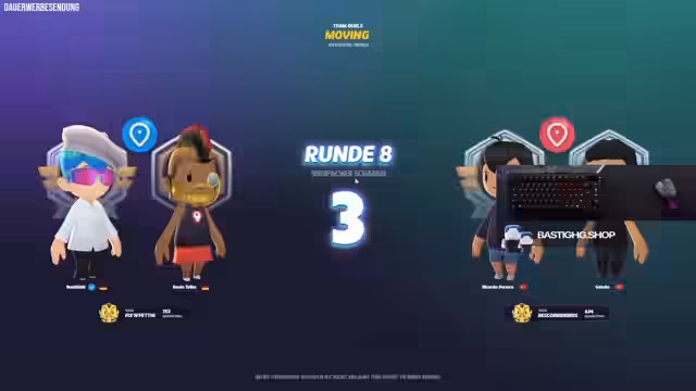01:44:51Das Spiel kann man auch taktisch angehen. Basti müsste diese Neuner da absaften, das wäre ja noch eine Strat, die funktionieren könnte. Es hat übelst geleckt, Bruder! Es ist genau das passiert, was ich wollte. Nur mit dem Part, dass ich nicht getroffen hab. Basti wollte die neuen Dinger runterholen. Basti muss es trotzdem weiter versuchen. Basti geht noch mal auf die neuen. Das ist der einzige Strat, den Basti hat. Basti ist lucky. Basti muss eigentlich die 10 holen. Mit der 10 kann Basti es noch holen. Basti hätte auf die 8 werfen sollen. Basti hat schon einen auf der Null gehabt. GG, das ist so ein gutes Spiel. Das ist eine Achterbahnfahrt der Gefühle. Hätte Basti vielleicht nicht 19 Stück auf die 9 gepackt, dann hätte Basti es vielleicht geholt. Basti weiß immer nicht, ob das so schlau ist, unten die ganze Kraft zu stacken. Es folgt das Spiel Quiz. Da muss man Kategorien, ja, 3 Punkte in einer Kategorie vollmachen. Und man muss insgesamt 3 Kategorien. Das Schlimmste war immer Kunst. Es gibt Geografie, Sport und dann drei Sachen, wo Basti auch nichts weiß.