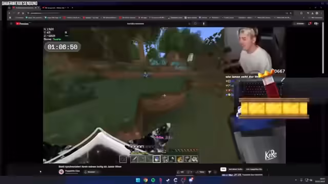 01:08:04Basti und Kevin setzen das Spiel mit einer Frage zur Tierartbestimmung fort, wobei Basti zunächst auf eine Zecke tippt und richtig liegt. Anschließend muss Kevin das Wort 'Köln' für drei Punkte buchstabieren, was ihm gelingt. Es wird um 100.000 Euro gespielt, wobei das nächste Spiel 'Kabelsalat' ist. Stattdessen einigen sie sich auf 100 Subs als Wetteinsatz. Kevin muss sich abwenden, während Basti sich auf das Spiel vorbereitet. Basti äußert Bedenken bezüglich der Helligkeit seines Monitors und der Schwierigkeit des Spiels. Er kommentiert Kevins Spielweise als schlechten Sportsgeist, während er selbst taktische Manöver anwendet. Es folgt ein humorvoller Monolog über 'Zick-Zack' im Bezug auf eine Uhr und einen Big Mac. Basti merkt an, dass Kevins Board einfacher sei, woraufhin Kevin das Spiel gewinnt. Die Übersicht zeigt einen Rückstand für Basti, aber es wird betont, dass noch viele Punkte zu holen sind.