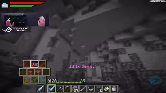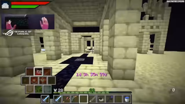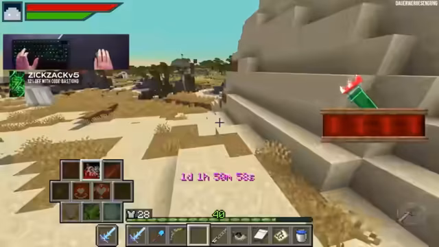 00:37:37Der Streamer überprüft, ob sein Drache noch weiter wachsen kann, da er noch viele Drachen-Mahlzeiten besitzt. Er stellt fest, dass der Drache bereits Stufe 5 erreicht hat und noch größer werden kann, was ihn überrascht und amüsiert. Mit seiner verbesserten Ausrüstung und den stärkeren Zaubern macht er sich auf den Weg zum nächsten Endboss, dem 'Eye of Desert'. Dafür benötigt er Wüsten-Items wie Kakteen und einen 'dead bush'. Er begibt sich in Richtung des Strongholds, um die Enddimension zu erkunden. Während der Reise stellt er fest, wie schnell sein Drache ist und dass der Server Schwierigkeiten hat, die Chunks nachzuladen. Er findet einen Kaktus und einen 'dead bush' und überlegt, ob er das 'Eye of Desert' schon einmal gemacht hat, was ihn dazu bringt, nach einem anderen Endboss-Ei zu suchen, da er sich nicht sicher ist, ob er alle Bosse gespielt hat. Er entscheidet sich schließlich, das Labyrinth zu erkunden, für das er bereits eine Karte besitzt.