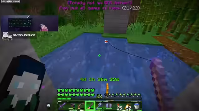 02:24:13Nachdem das Raid-Achievement erfolgreich abgeschlossen war, startete der Streamer direkt in den nächsten anspruchsvollen Teil des Projekts. Das neue Ziel besteht darin, 22 verschiedene Arten von Fischen und Angel-Items zu fischen. Dies umfasst sowohl normale Fischarten als auch extrem seltene Schätze wie Tintensäcke mit einer Drop-Wahrscheinlichkeit von nur 0,1%. Der Streamer richtete eine Angel-Farm ein, die sowohl Schätze als auch Müll-Trödel an den Angelhaken bringt, und begann den zeitaufwendigen, aber für ihn erfreulichen Grind.