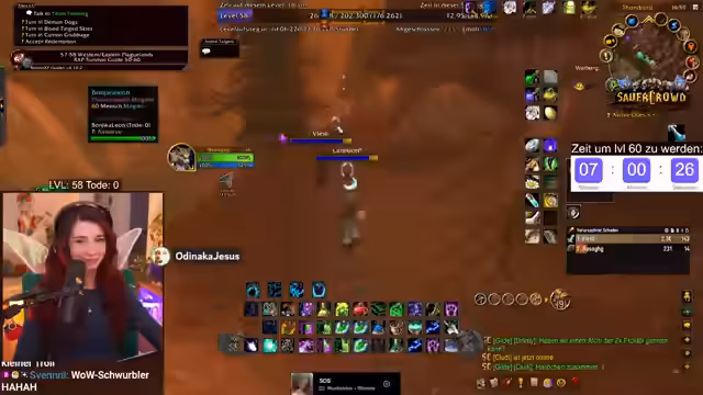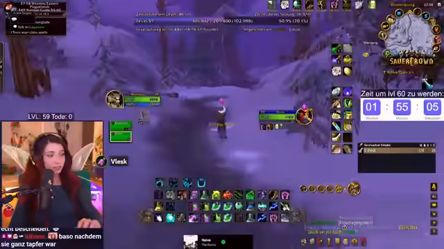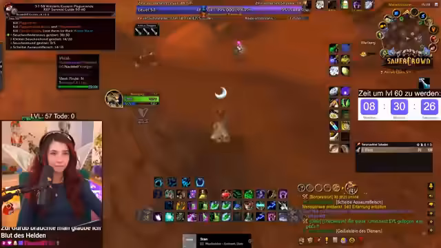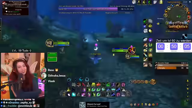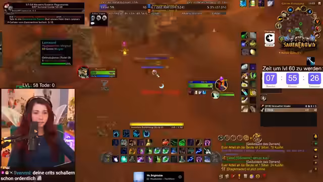 07:10:58Die letzten Stunden des Streams sind geprägt von einem intensiven, stressigen Grind-Fokus. Der Streamer rechnet die verbleibende Erfahrungspunkte hoch (156.000 XP) und konzentriert sich vollständig auf das Töten von Furbolgs, um die Quests zeitgerecht abzuschließen. Dabei kommt es zu unvorhergesehenen Problemen, wie dem Spawn von Mobs direkt auf der Position der Spieler. Der Tonfall wird ernster, da das Erreichen von Level 60 fraglich wird und der Zeitdruck immens wird.