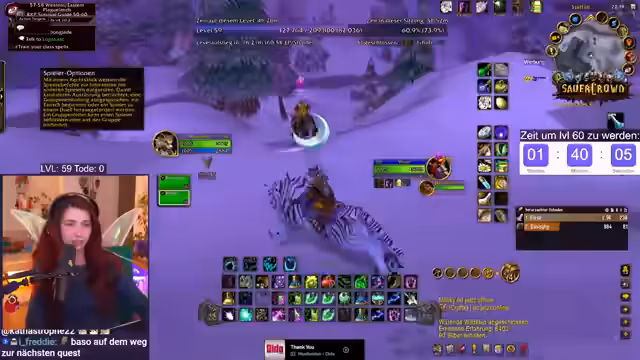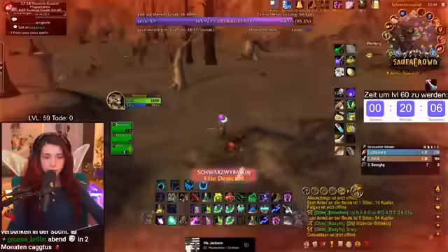 08:39:36Der Druck, Level 60 bis Mitternacht zu erreichen, spürbar. Der Streamer braucht nur noch zwei Yeti-Hörner, hat jedoch großes Pech beim Droppen. Ein weiteres Hindernis ist die benötigte Wolle, die zur Zeit knapp ist. Die Jagd nach den fehlenden Items wird zügig fortgesetzt, um das Zeitziel einhalten zu können.