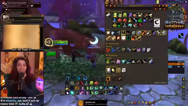 12:25:49Ein Großteil des Streams widmet sich dem Aufräumen und Sortieren des überfüllten Inventars. Es werden viele Gegenstände durchgegangen, um Ausrüstung mit besseren Statistiken zu identifizieren und unbrauchbare oder bankfeste Items zu entfernen. Dabei werden auch Gegenstände wie Kräuter und Alchemiebedarf geprüft, um das Inventar zu optimieren. Es werden auch Diskussionen über den Verkauf oder die Weitergabe von Gegenständen an Gildenmitglieder geführt.