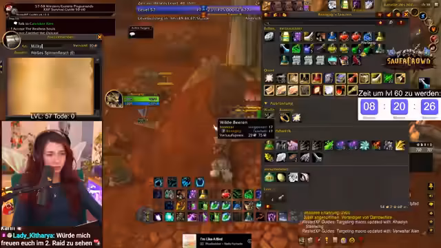 08:28:44Nach Abschluss der nervigen Quest mit den Elites konzentriert sich der Streamer auf die Farm der Yeti-Hörner für eine weitere Quest. Dies gestaltet sich schwierig, da ein anderer Spieler die gleichen Mobs farmt und wichtige Beute aufnimmt. Gleichzeitig wird der Fokus auf die Raids-Veranstaltung am Abend gelegt, für die das Level 60 erreicht werden muss.