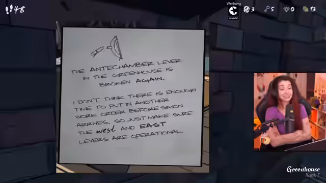 04:21:14Der Streamer entdeckt im Greenhouse, dass durch die Platzierung auf reichhaltiger Erde mehr Blumen (Kristalle) entstehen. Er erhält drei Gems für nur einen Gem, was er als extrem cool empfindet. Diese Entdeckung führt dazu, dass er weitere Räume erkundet und zusätzliche Items sammelt, was den Run als einen der besten bezeichnet.