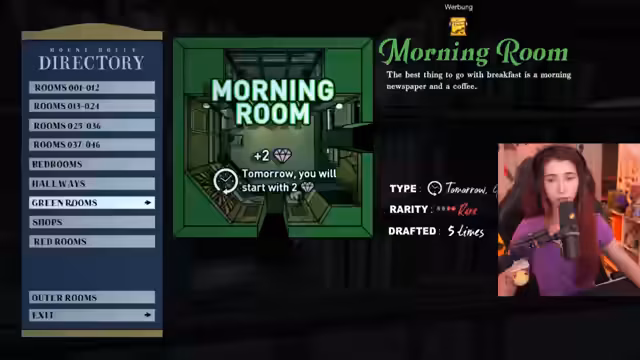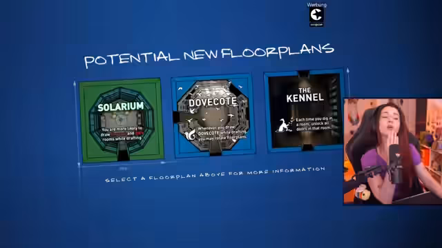 05:37:00Die Beschäftigung mit dem Spiel Blueprints steht im Mittelpunkt des Streams. Der Streamer navigiert durch verschiedene Räume und entscheidet über die Auswahl neuer architektonischer Pläne. Er äußert seine Verwirrung über die Spielmechanik, insbesondere über das Erhalten identischer Räume und die Special Cost Bypass beim Aquarium. Bei seinen Entscheidungen wird er vom Chat unterstützt, der ihm bei der Auswahl zwischen verschiedenen Räumen wie Curry Yard, Aquarium und Boudoir hilft.