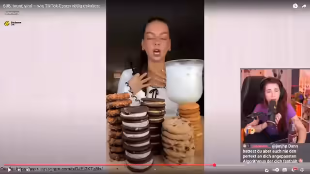 01:13:34Im Fokus stehen übertrieben teure Food-Trends wie Cookie Crumble oder Früchte-Desserts in aufwendiger Verpackung, die teilweise weit über 20 Euro kosten. Der Streamer stellt fest, dass diese Produkte oft nicht wegen ihres Geschmacks gekauft werden, sondern als Statement für den Luxus-Konsum. Dabei kritisiert er die überteuerten Preise und fragt sich, ob der wahre Geschmack den Preis rechtfertigt. Gleichzeitig werden extreme Mengen an Essen in Videos konsumiert und durch Social Media popularisiert, wobei oft fragwürdig ist, ob diese Mengen überhaupt realistisch konsumiert werden können.