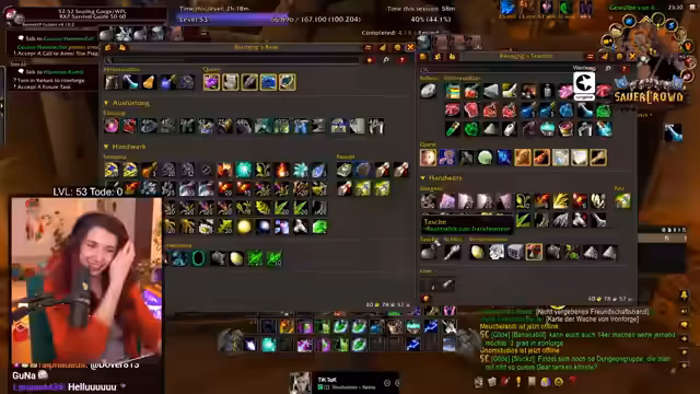 05:06:53Während der Erkundung äußert der Streamer Vorlieben für einfache Gerichte wie Tiefkühl-Gemüselasagne und kritisiert, dass man sich für selbstgemachten Salat einen ganzen Kopf kaufen muss. Er zeigt großzügige Absichten und erwähnt, dass er gerne Gold an andere Spieler abgeben würde, sobald er seine eigenen Ziele wie die Dualspec-Fähigkeit erreicht hat. Ein bedeutendes Ereignis ist der Fund einer wertvollen, von einem Mitspieler namens Wilbo hergestellten Zwölvertasche, die er für das gemeinsame nutzen will.