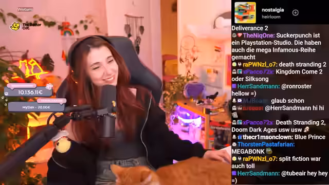 04:00:52Nach intensiven Spielsequenchen wendet sich der Streamer humorvollen Alltags-Themen zu. Es gibt eine längere Diskussion über geplante Halloween-Partys, wobei die Logistik und die deutsche Bahn kritisiert werden. Ein wiederkehrendes Witzthema ist das Tragen eines Katzenkostüms in der Öffentlichkeit, was zu lustigen Kommentaren führt und eine entspannte, persönliche Atmosphäre schafft.
