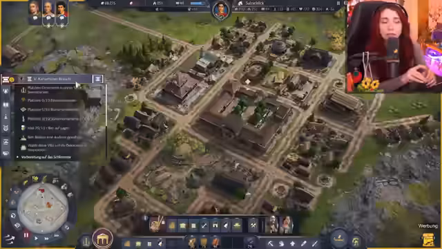 07:57:02Die Streamerin erklärt das Spielprinzip von Anno 117 als Strategie-Aufbauspiel im Kampagnen-Modus, bei dem es darum geht, eine blühende Stadt aufzubauen und die Bedürfnisse der Bevölkerung zu erfüllen. Sie stellt fest, dass ihre Stadt unorganisch gewachsen ist, was zu einem chaotischen Erscheinungsbild führt, aber sie verteidigt dies als „natürlich gewachsen“. Die Produktion von Tuniken und Aalen stagniert, was auf die schnell wachsende Bevölkerung zurückzuführen ist. Um die Wirtschaft anzukurbeln, wird ein Hygienia-Fest veranstaltet, das die Gesundheit der Bürger feiert und das Einkommen um 2000 Denare erhöht. Dieses Fest führt zu einer Rekordbilanz von +572, der höchsten, die sie bisher im neuen Anno erreicht hat. Die Streamerin plant den Bau von Toiletten, um die Hygiene weiter zu verbessern, was jedoch weitere Umstrukturierungen erfordern wird. Sie überlegt, ob sie Halsketten für die Bevölkerung produzieren oder mit dem Aufbau einer neuen Insel beginnen soll.