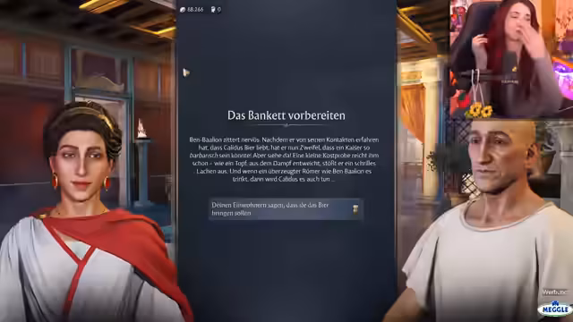 06:49:57Eine tiefgründige Unterhaltung mit einem Charakter namens Ben beleuchtet die politische Lage in Albion. Ben berichtet über den ehemaligen Herrscher Lucius, dessen Tod für许多人 keine Verluste bedeutete, besonders für Frauen. Es wird eine furchtbare Geheimnis zwischen den beiden erwähnt. Im weiteren Verlauf wird eine Parteigründung im Chat inszeniert, deren Regel besagt, dass Kriege nur als 'Küssenschlacht' ausgetragen werden dürfen. Dies zeigt den humorvollen, aber auch strategischen Umgang des Streamers mit den Spielmechaniken.