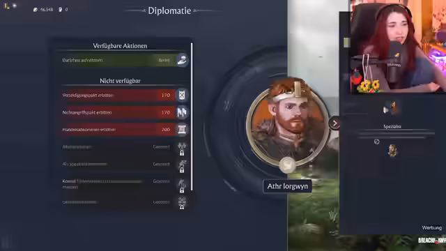 06:39:37Nachdem der militärische Weg als stressig und teuer empfunden wird, erkundet der Streamer diplomatische Optionen. Er versucht, die Anführerin Voada, die ihn in 'unendlichen Krieg' verwickelt hat, mit Geschenken und Worten zu besänftigen. Er bezieht sich dabei auf die gemeinsame Situation als Frauen an der Macht und versucht, durch kleine Geldgeschenke und charmante Worte die Beziehung zu verbessern. Der diplomatische Weg scheint zwar teuer, aber für ihn eine gangbarere Alternative zum direkten Konflikt zu sein.