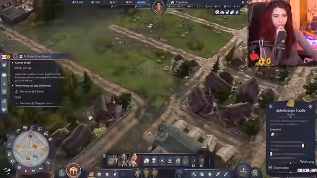 08:50:18Während des Streams wird die städtebauliche Planung der Insel in Anno 117 fortgesetzt. Es werden neue Gebäude wie Toiletten errichtet, um die Gesundheit der Bevölkerung zu verbessern, und strategisch platziert, um die Reichweite zu maximieren. Gleichzeitig tauchen diplomatische Entscheidungen auf, wie die Frage, ob ein Wald für eine Mission abgeholzt werden soll. Eine surprise Aggression eines zuvor unterstützenden Charakters, des Prokurator Corvinus, führt dazu, dass der Streamer sich gegen Rodung entscheidet, um diplomatischen Widerstand aufrechtzuerhalten.