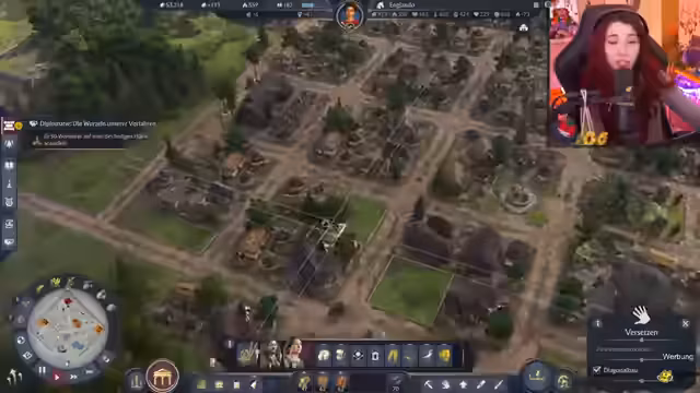 03:41:49Die Streamerin beginnt die Anno-Kampagne in Albion und versucht, sich an die aktuellen Aufgaben zu erinnern. Es wird erwähnt, dass das Spiel viel Spaß macht und an Anno 1800 erinnert, welches sie gerne gespielt hat. Die aktuelle Situation in Albion wird beleuchtet: Die Spielerin hat ihren gesamten Wohnbereich umstrukturiert, um eine Villa auf einem Hügel zu integrieren, was zu einem finanziellen Defizit geführt hat. Die bevorstehende Ankunft des Kaisers, der die Spielerin zuvor verbannt hatte, sorgt für Besorgnis, da die Stadt eher keltisch als römisch geprägt ist, was dem Kaiser missfallen könnte. Anno wird als Strategieaufbauspiel für Neulinge erklärt, in dem man eine Stadt aufbaut, sich um Bewohner kümmert und Quests erfüllt.
