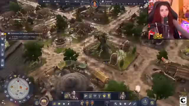 04:12:38Während des Spiels treten technische Schwierigkeiten auf. Die GPU-Auslastung ist nahezu maximal, was zu Performance-Problemen und Lag führt. Der Streamer schließt andere Programme, um die Last zu reduzieren, und stellt die Grafikqualität herab. Gleichzeitig plant er den Aufbau auf seiner neu gekauften Insel und muss die Produktionsketten für Ressourcen wie Pferde für das bevorstehende Eponalia-Fest anpassen. Er muss auch Platz für eine Stadtwache schaffen, was eine umfassende Umstrukturierung des Wohngebiets erfordert.