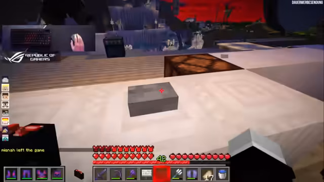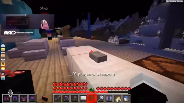 07:40:41Während des Versuchs, eine gefährliche Abfahrt mit Elytra zu meistern, kommt es zu mehreren Fehlschlägen. Ein Teilnehmer stößt mit dem Kopf an einen Block und bricht ab, ein anderer versucht verzweifelt, aus der Situation herauszukommen. Gleichzeitig gibt es Probleme mit der Verbindung und dem Verständnis bestimmter Game-Mechaniken. Ein Streamer verliert wichtige Gegenstände, was zu Frust führt. Die anderen Teilnehmer beobachten die Szene mit Mischung aus Spannung und Belustigung, während der Betroffene verzweifelt nach Lösungen sucht.