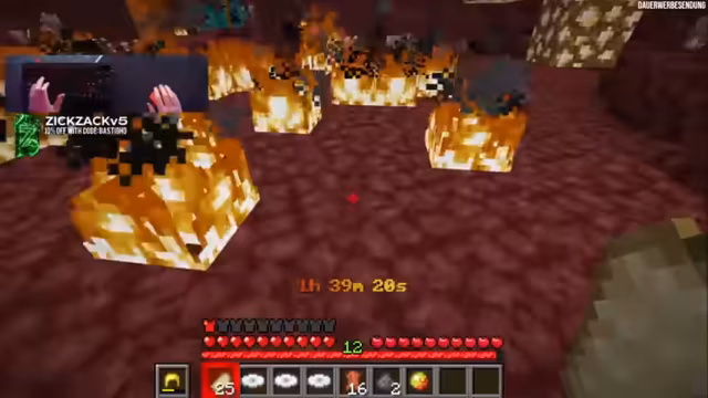 00:10:27Der Livestream wurde gestartet und der Streamer begrüßt die Zuschauer. Er plant, eine sogenannte 'Only Nether Mob Drops' Challenge zu spielen, bei der er nur durch Drops von Monstern im Nether an Items kommt und ohne Blöcke abzubauen oder zu craften auskommen muss. Ziel ist es, den Wither zu besiegen. Die Challenge wird als besonders herausfordernd beschrieben, da der Streamer auf herkömmliche Weise an Ressourcen wie Holz, Gold oder Obsidian nicht gelangen kann.