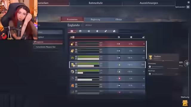07:14:46Nach dem Abschluss der Albion-Kampagne kehrt der Streamer nach Latium zurück und entdeckt veränderte Inseln durch NPC-Aktivitäten. Es folgt eine Phase der Ressourcenanalyse, wo Harz- und Olivenöl-Vorkommen identifiziert werden. Der Streamer plant Handelsrouten und diskutiert den Ausbau der Wirtschaft, während er technische Probleme wie kurze Stream-Unterbrechungen thematisiert und DLC-Inhalte wie das Ägypten-Update vertieft.