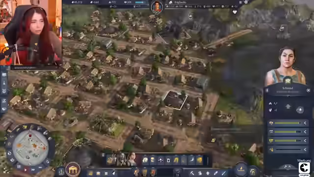 04:57:49Neben der Hauptmission widmet sich die Streamerin dem ständigen Wachstum der Stadt. Ein neues Produktionsgebäude, der Drahtzwirbler, wird errichtet, um den Anforderungen der Bevölkerung nach Halsketten nachzukommen. Dies erfordert die Anpassung der Straßenführung und der Bebauung, um alle Gebäude effizient zu versorgen, was zu typischen 'Anno'-Umzugsmanövern führt.