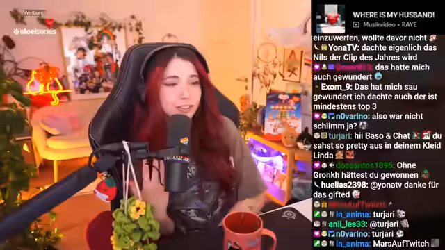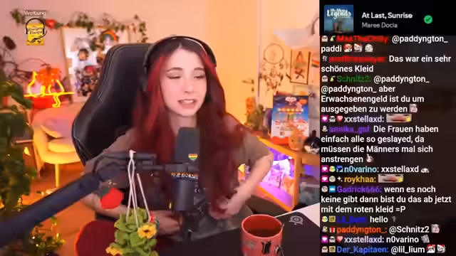 03:15:20Das rote Kleid für die Stream Awards wurde bei Viviri gekauft und war nicht gesponsert. Für das nächste Jahr werden Überlegungen zu einem blauen Kleid oder sogar einem Anzug für Frauen angestellt. Die Möglichkeit, bei den nächsten Stream Awards wieder teilzunehmen, wird mit der Hoffnung auf relevante Clips im kommenden Jahr verbunden.
