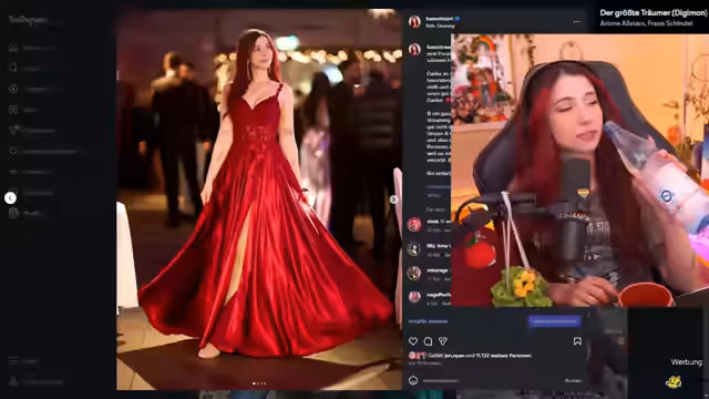 00:15:14Ein Hauptthema ist das Outfit bei den Stream Awards. Der Streamer erklärt, dass sie sich bewusst für ein neues, bequemes rotes Kleid entschieden hat, im Gegensatz zum unbequemen Kleid des Vorjahres. Sie diskutiert, dass viele Zuschauer fälschlicherweise dachten, es handle sich um dasselbe Kleid, das sie in einem Reel gezeigt hatte, und reflektiert über die mangelnde Aufmerksamkeit im Chat.