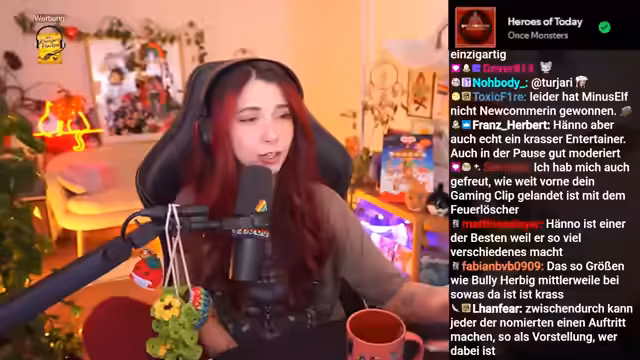 01:09:11Ein zentrales Bedauern teilt die Streamerin im Zusammenhang mit ihrem Gaming-Clip: Für Zuschauer, die das Spiel nicht kennen, war der Kontext nicht erkennbar, warum sie so reagierte. Sie realisierte dies erst kurz vor Abgabeschluss der Abstimmung. Der Clip zeigt, wie sie einen eigentlich unbesiegbaren Gegner mit einem Feuerlöscher besiegt – ein unerwartetes und lustiges Moment. Sie bereut, nicht rechtzeitig darauf gekommen zu sein, Kontext hinzuzufügen, da dies möglicherweise die Platzierung verbessert hätte. Auch ihr Community-Mitglied Bröki bestätigte, dass der Kontext fehlte.