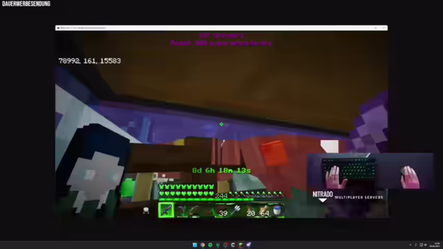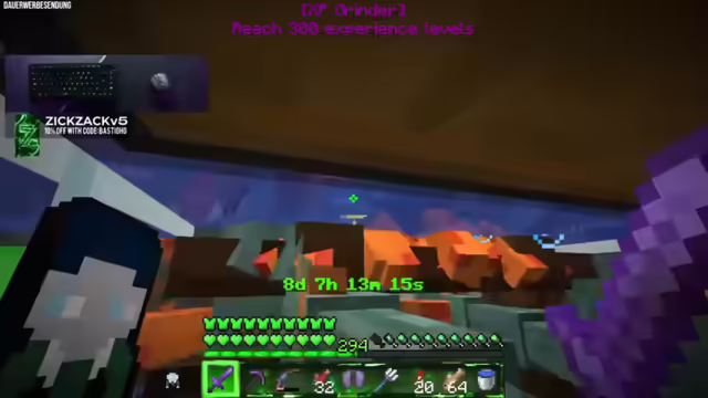 01:32:58Der Streamer beendet erfolgreich das XP-Grinding und erreicht Level 300, um die 111 Custom Achievements abzuschließen. Er zeigt die vollen Kisten der Guardian Farm und bereitet sich darauf vor, das nächste Achievement in Angriff zu nehmen: 'Superhero of the Village', welches das Besiegen von Raid Captains erfordert. Er erklärt, dass 332.592 Guardians getötet werden mussten, um von Level 100 auf 300 zu kommen. Anstatt eine Raidfarm zu bauen, plant er, Banner von Outposts abzubauen, um das Achievement zu erreichen. Es stellt sich heraus, dass die Banner stacken, was die Aufgabe erheblich vereinfacht. Er erinnert sich daran, Banner im End platziert zu haben und überlegt kurz, dorthin zu fliegen, verwirft die Idee aber wieder. Er stellt fest, dass er bereits 13 der benötigten Banner besitzt, da er diese immer wieder platziert statt sie wegzuwerfen.