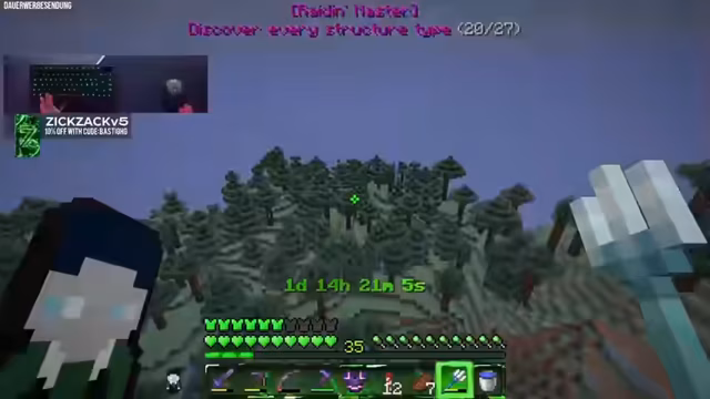 02:53:19Nachdem bereits zahlreiche Strukturen gefunden wurden, gibt es eine kurze Pause bei der Jagd. Der Streamer gibt an, dass er noch nicht alle 27 benötigten Strukturen entdeckt hat und listet auf, welche als nächstes gesucht werden sollen, darunter Strongholds, Sumpfhütten und Trial Chambers. Der Prozess des Aufdeckens, welche Strukturen gezählt werden und welche nicht, wird als komplex und manchmal unlogisch empfunden, bleibt aber fester Bestandteil des Projektfortschritts.