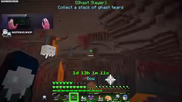 00:15:55Das aktuelle Ziel im Projekt mit 111 Custom Achievements ist das Sammeln aller 45 verschiedenen 'Tipped Arrows', also Pfeile mit Trankeffekten. Der Streamer muss hierfür eine Vielzahl von Tränken brauen, die es teilweise in verschiedenen Stufen und Längen gibt. Dies erfordert einen systematischen Ansatz und viel Vorarbeit, um die gewünschten Pfeile herzustellen.