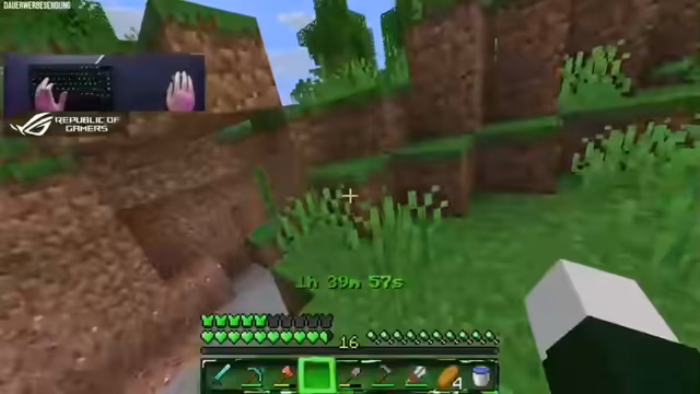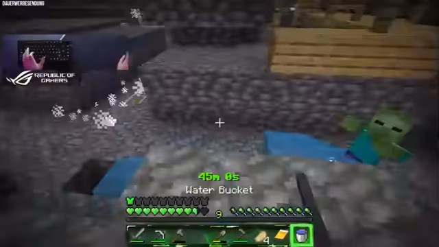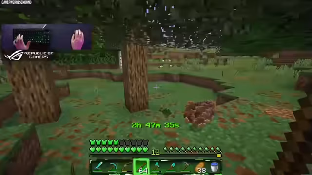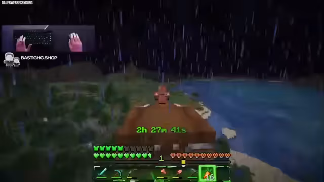 02:35:59Im Stream werden neue Gameplay-Einstellungen getestet, wie die Möglichkeit, kontinuierlich Blöcke abzubauen, indem man einmal klickt und den Block hält. Dies wird als sehr nützlich für Redstone-Projekte, aber auch als sehr ungewohnt für PvP empfunden. Im weiteren Verlauf wird diese Einstellung für einen MLG-Wasserfall-Trick genutzt, bei dem der Streamer aus großer Höhe springt und automatisch einen Eimer Wasser platziert, was zu einem Mix aus Erfolg und Pech führt.