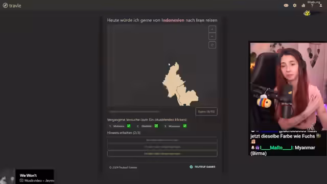 05:50:57Die Streamerin freut sich über ihre verbesserten Geografie-Kenntnisse, die sie durch die Streams erworben hat, und betont, dass sie ohne diese Kenntnisse die aktuelle Aufgabe nicht hätte lösen können. Sie erklärt detailliert ihre gewählte Route von Indonesien über Malaysia, Thailand, Myanmar, China, Afghanistan nach Iran und lobt sich selbst für ihre Leistung. Es wird kurz auf alternative Routen eingegangen, die ebenfalls möglich gewesen wären. Anschließend wechselt das Thema zu Pokémon. Es wird ein Geheimnis-Pokémon gesucht, das bestimmte Kriterien erfüllt: Es ist nicht vom Typ Normal oder Flug, befindet sich nicht in der dritten Entwicklungsstufe, ist nicht vollständig entwickelt, hat nicht die Farbe Braun und lebt nicht im Grasland oder Wald, aber es stammt aus der ersten Generation. Verschiedene Pokémon wie Shiggy, Mauzi und Raupi werden in Betracht gezogen, aber aufgrund ihrer Eigenschaften verworfen. Schließlich wird das richtige Pokémon erraten. Die Streamerin freut sich über ihren Erfolg und erklärt sich selbst zur Pokémon-Meisterin des Abends.