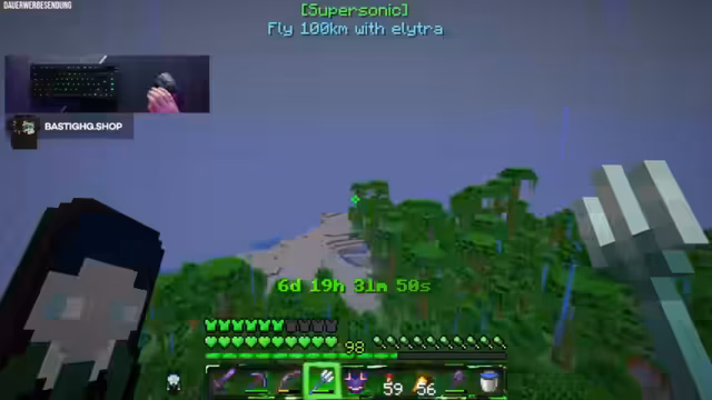00:33:16Nachdem alle Suppen hergestellt wurden, erreichen sie ein neues Achievement: 100 Kilometer Flug. Der Streamer erklärt, dass dies 100.000 Blöcke bedeutet, was machbar ist. Er beginnt, mit der Elytra zu fliegen und berichtet über den Fortschritt. Während des Fluges werden verschiedene Themen angesprochen, wie z.B. das Geburtstagsparadoxon, Unterschiede zwischen UK und Großbritannien und der Versand von Merch in die USA.
