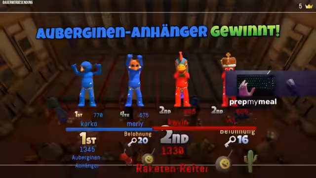 03:30:15In einer hitzigen Runde 'Pummel Party' sehen sich die Teilnehmer mit unvorhergesehenen Herausforderungen konfrontiert. Ein riskantes Manöver mit einem Item, das dem Gegner Schaden zufügt und die Itemnutzung verhindert, sorgt für Aufsehen. Trotz einiger Fehlentscheidungen und strategischer Überlegungen, wie der Einsatz von Raketen und das Sammeln von Schlüsseln, bleibt das Spielgeschehen chaotisch. Es kommt zu hitzigen Diskussionen über die besten Vorgehensweisen, wobei der Fokus auf der Rettung von Teammitgliedern und der Maximierung des Schadens gegen die Gegner liegt. Die Spieler versuchen, sich gegenseitig zu übertrumpfen, indem sie Krokos Lebenspunkte reduzieren und taktische Vorteile erlangen, was zu einer spannungsgeladenen Atmosphäre führt. Die Runde ist geprägt von riskanten Würfelspielen, strategischen Überlegungen und dem Versuch, das Blatt zu wenden, was die chaotische Natur des Spiels unterstreicht.