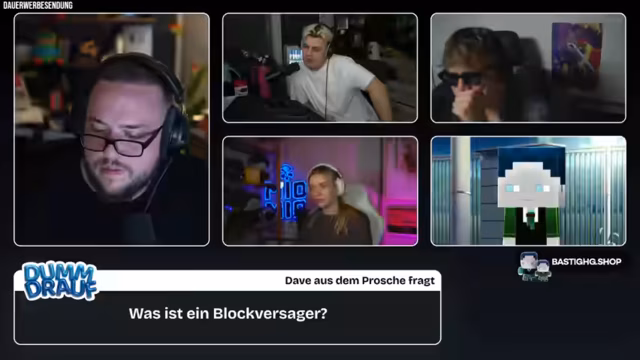 bastighg präsentierte 'Genial Daneben' mit absurden Begriffserklärungen, Einblicke in Papa-Platte-Aufnahmen und Gespräche über Sportveranstaltungen. Die Game Show startete mit einer Vorstellungsrunde. Ein Shirt wurde gezeigt und nach längerer Zeit 1.8 PvP-Spiel gespielt, was nostalgische Gefühle weckte. Zum Schluss wurde sich für Subs bedankt.