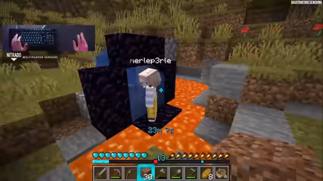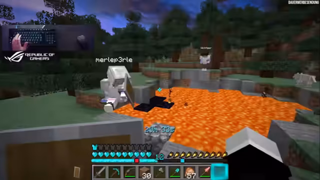 02:28:25Mit neu erlangter Ausrüstung und einem strategischen Plan begibt sich das Team in einen Lavasee. Ziel ist es, die dortigen Blaze-Kreaturen zu jagen und ihre Drops zu sammeln. Man baut ein komplexes System aus Blöcken und Wasser, um die Blazes effektiv zu bekämpfen. Der Kampf ist hektisch und erfordert präzises Timing und Teamwork, um den gefährlichen Monstern zu begegnen.