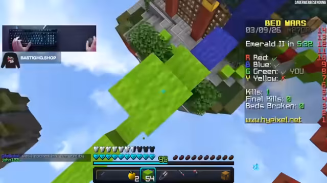 04:13:44Die Runde beginnt mit der Erkenntnis, dass alle Teams gleichzeitig in die Diamant-Spawner gehen, um mehr Items zu droppen lassen. Das Team priorisiert daher die schnelle Sammlung von Diamanten und Gold, um Rüstung und Werkzeuge zu craften. Es werden verschiedene Strategien diskutiert, wie das gleichzeitige Eindringen in gegnerische Basen und der Einsatz von TNT und Fire-Charges zur Verteidigung und zum Angriff. Das Spielverhalten wird als sehr chaotisch beschrieben, mit ständigen Konfrontationen und dem Verlust von wertvollen Ressourcen nach dem Tod.